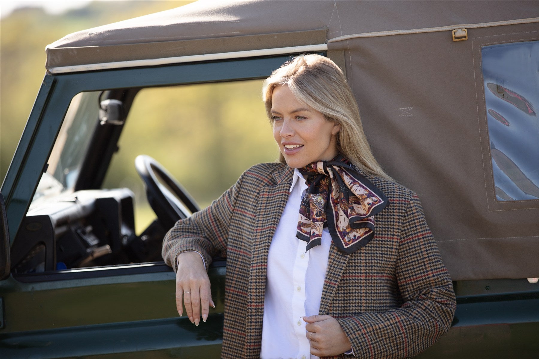 The beloved George & Friends design returns for Autumn/Winter 2025, reimagined in rich, seasonal tones that propel this countryside classic into a bold statement piece for the cooler months. With an alluring Charcoal colourway now available in the Narrow Silk size, this release brings a new depth of colour and character to one of Clare Haggas’ most cherished creations.