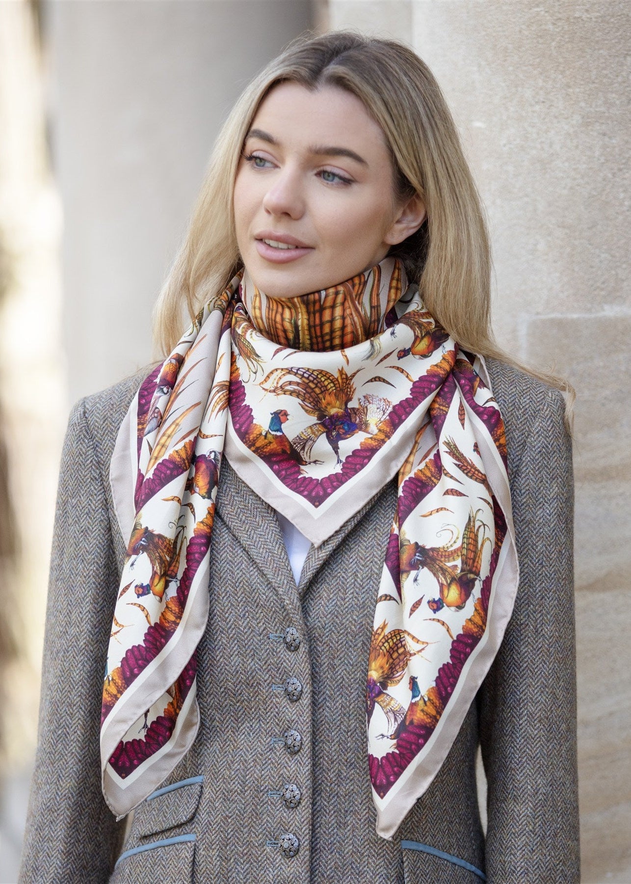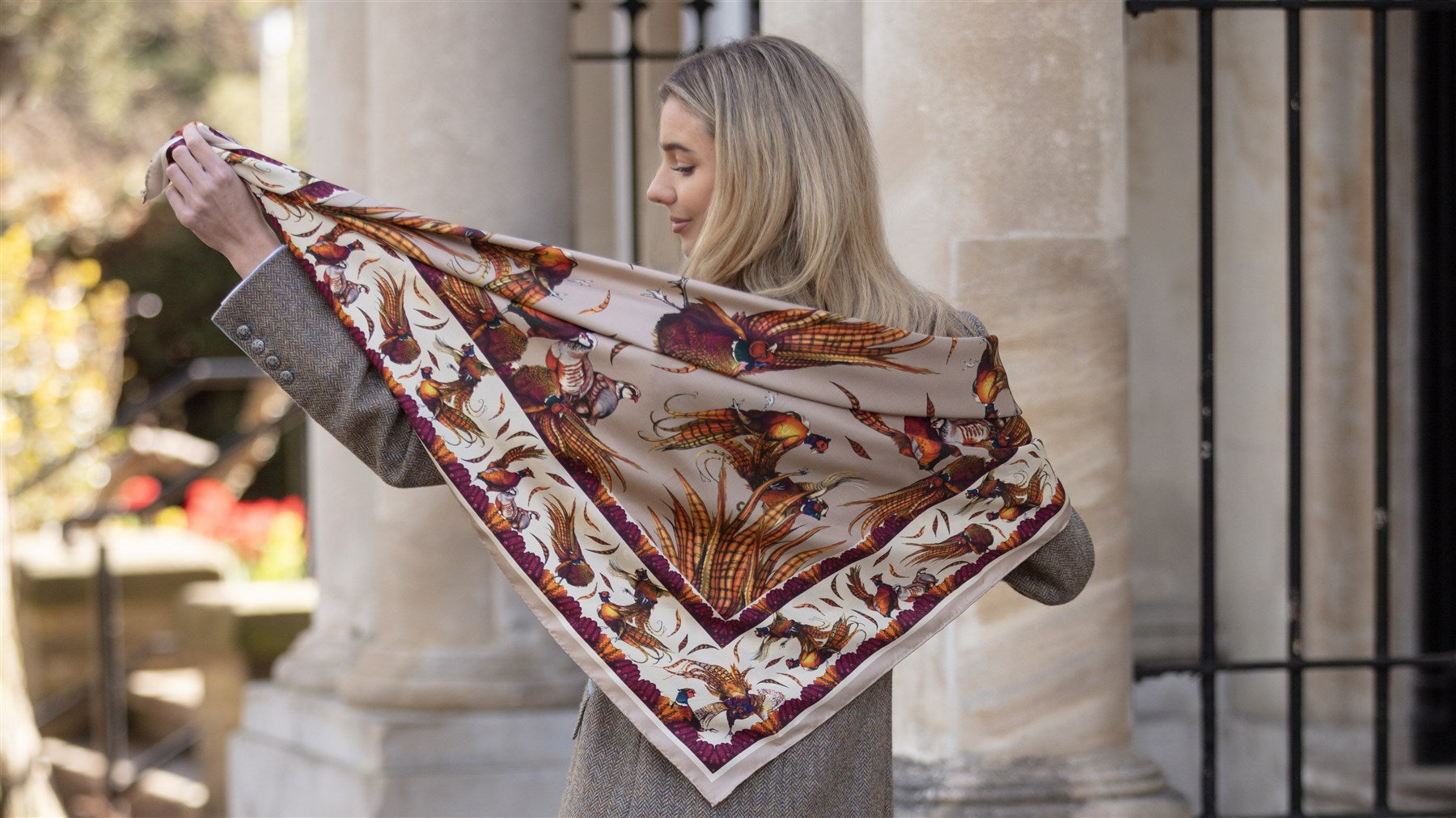The beloved George & Friends design returns for Autumn/Winter 2025, reimagined in rich, seasonal tones that propel this countryside classic into a bold statement piece for the cooler months. With a delectable Toffee colourway now available in the Large Square Silk size, this release brings a new depth of colour and character to one of Clare Haggas’ most cherished creations.