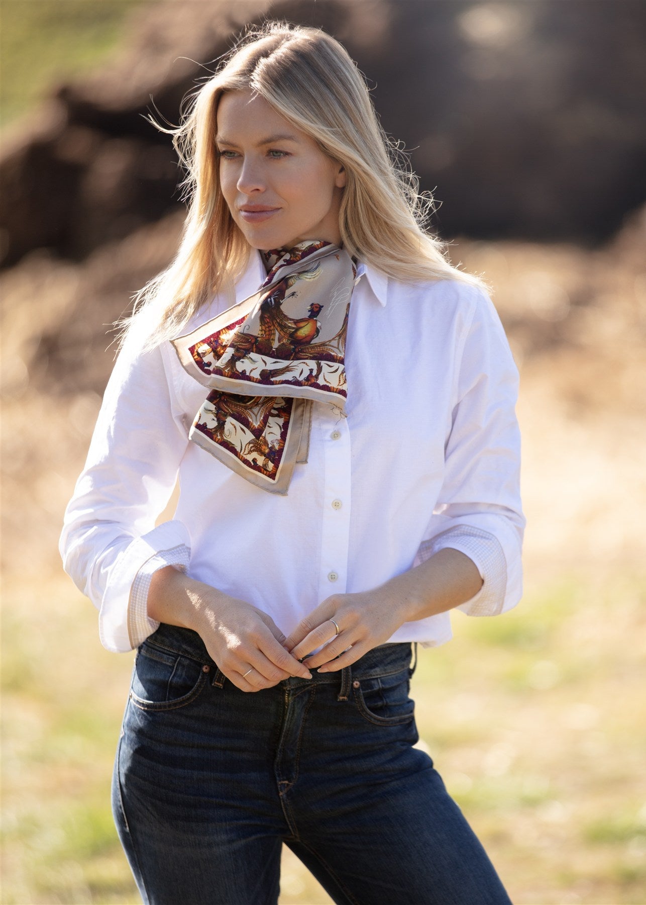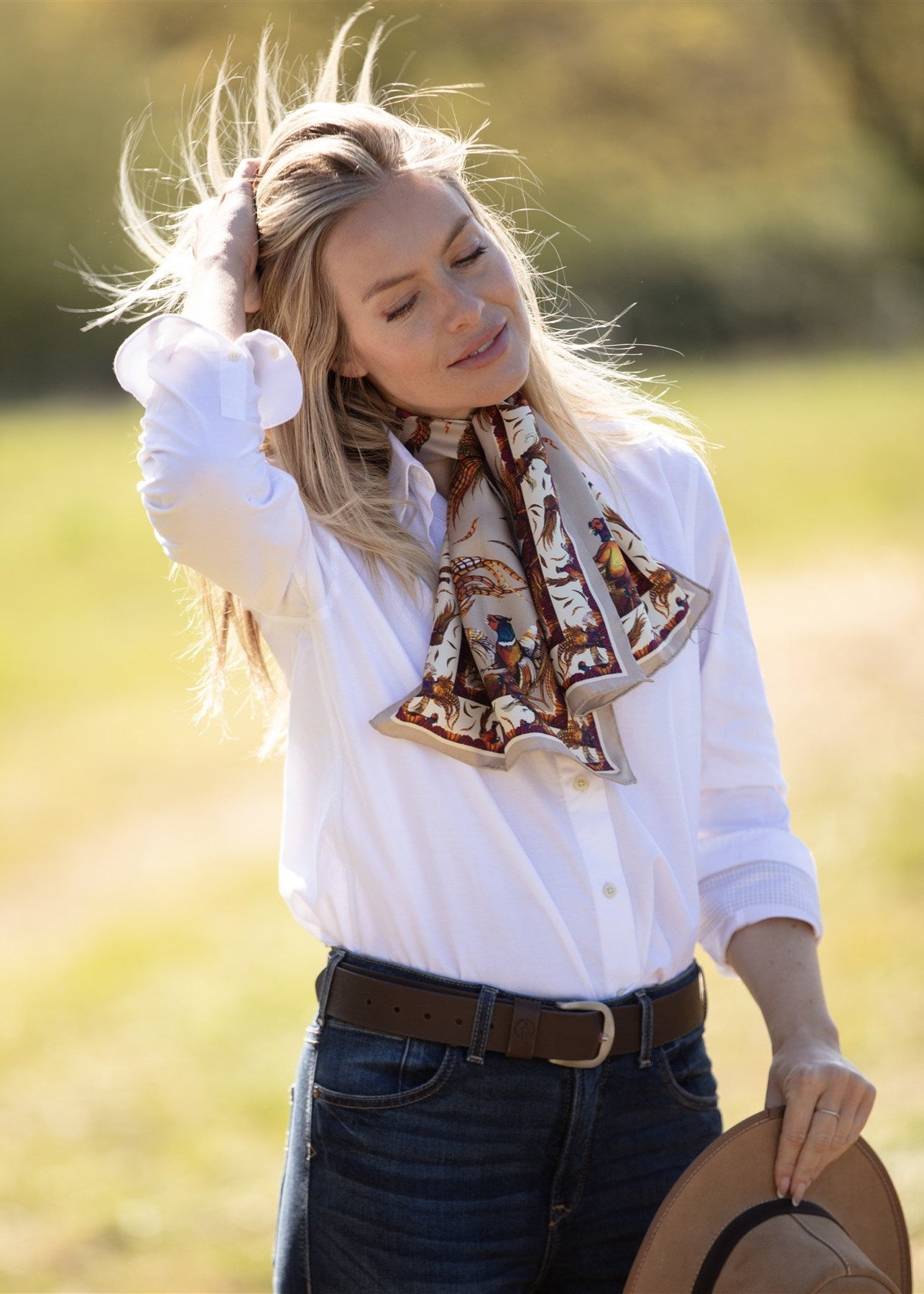 The beloved George & Friends design returns for Autumn/Winter 2025, reimagined in rich, seasonal tones that propel this countryside classic into a bold statement piece for the cooler months. With a delectable Toffee colourway now available in the Narrow Silk size, this release brings a new depth of colour and character to one of Clare Haggas’ most cherished creations.