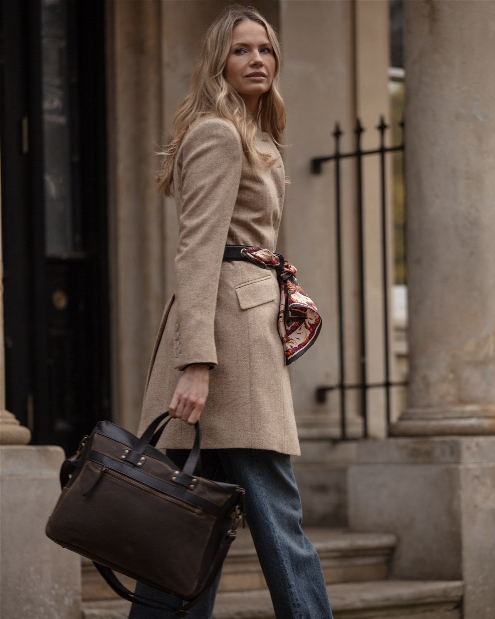 Meticulously handmade from the finest leather, with brass rivets, we’ve combined the heritage of British craftsmanship with Clare’s exuberant designs. *please note scarf is not included in the price