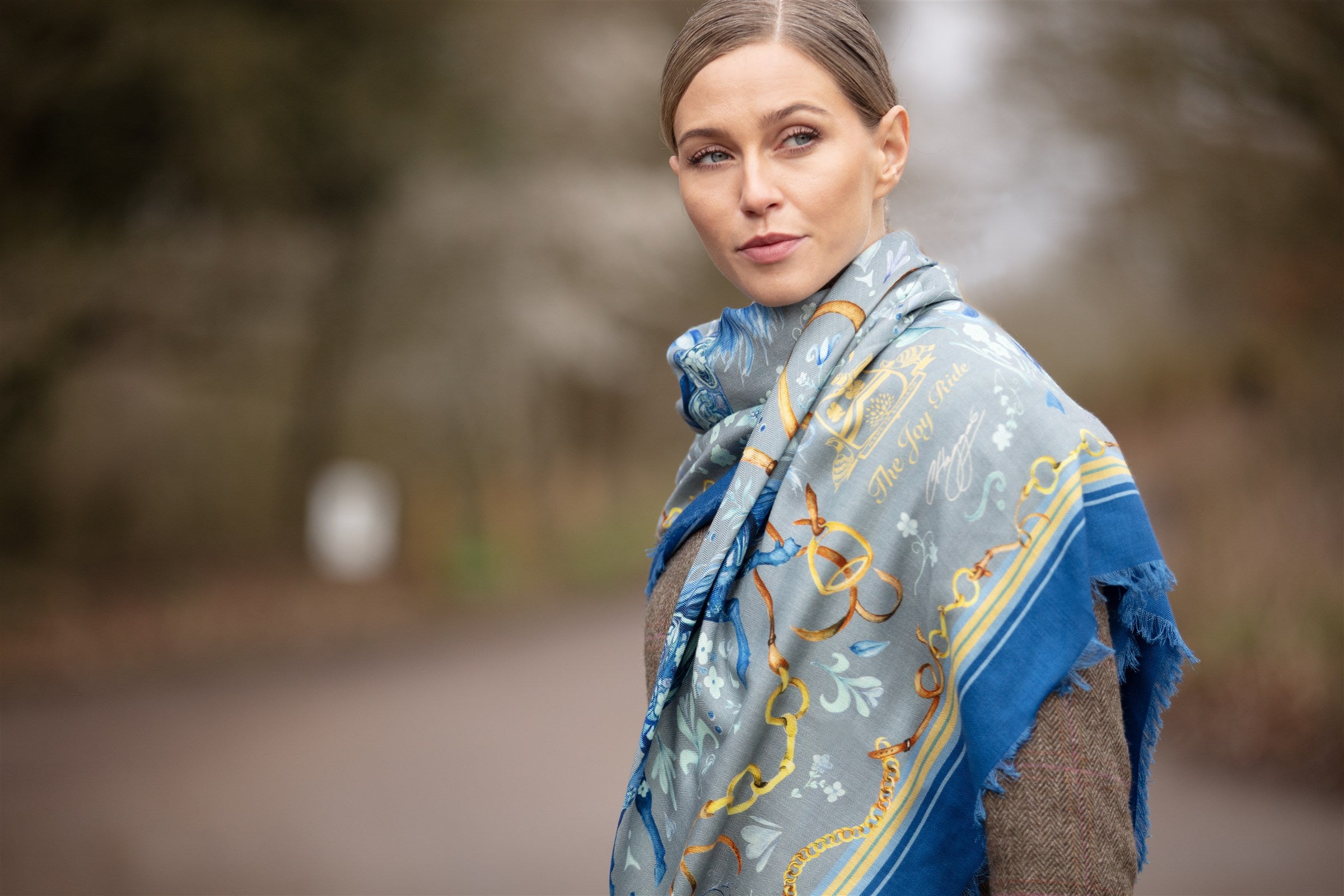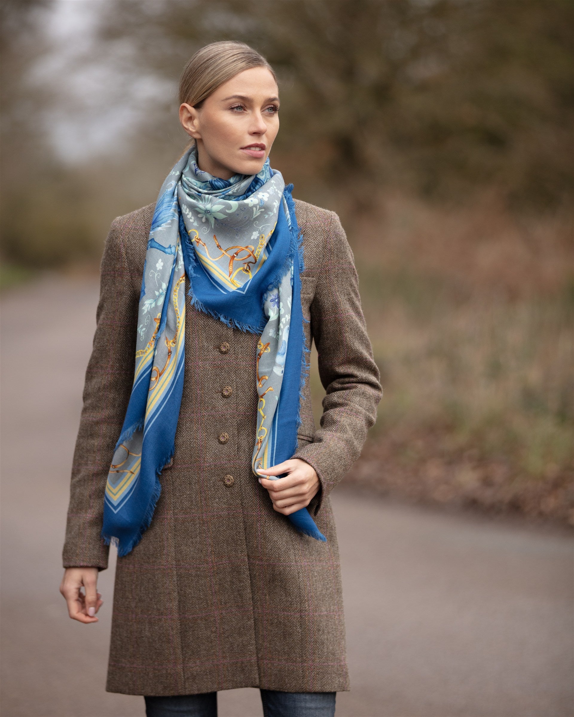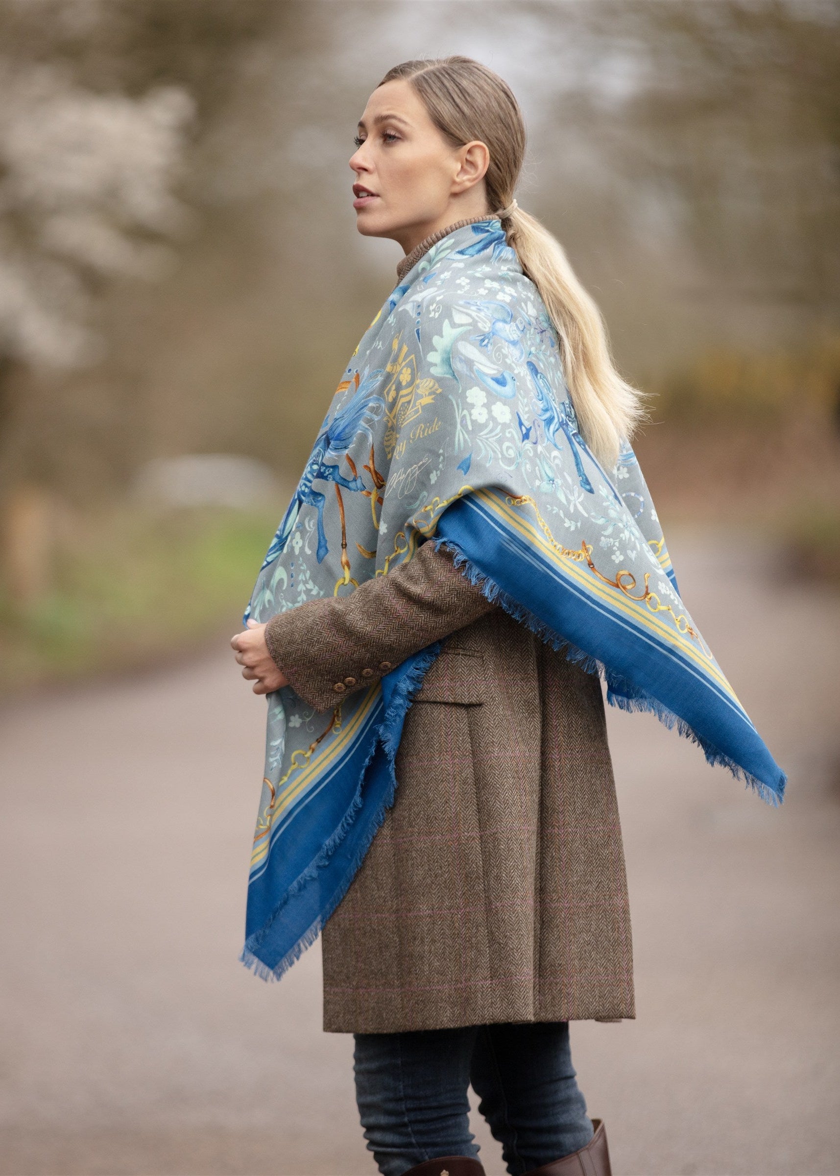 Wrap yourself in our generously sized Liberty Blue Wool Silk Shawl as we salute 2026, The Year of the Horse. This is our largest piece, featuring a divine equestrian tableau which is easy on the eye and lustrous against the skin. The beautifully composed mix of wool and silk creates a divine fluidity and handle, guaranteeing you'll be effortlessly chic, from the stable yard to the Square Mile.